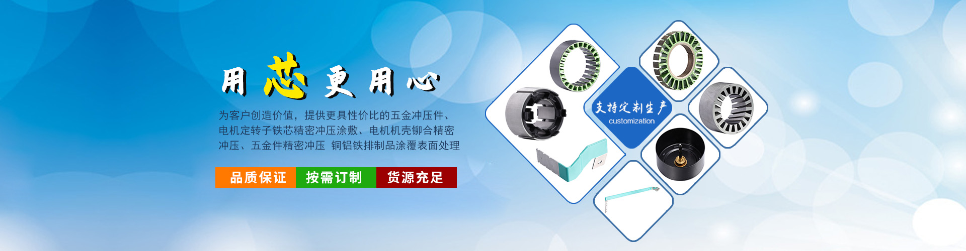 五金沖壓件、電機(jī)定轉(zhuǎn)子鐵芯精密沖壓涂敷、電機(jī)機(jī)殼鉚合精密沖壓、五金件精密沖壓 銅鋁鐵排制品涂覆表面處理